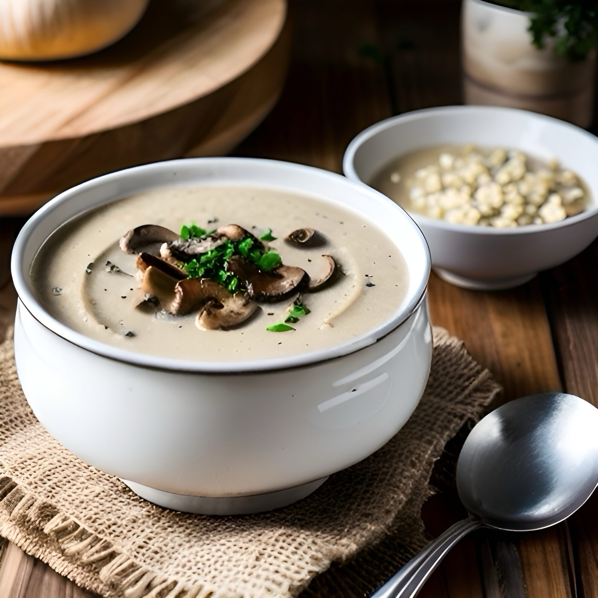 Servez la soupe aux champignons dans des bols, garnissez de persil frais haché et dégustez !