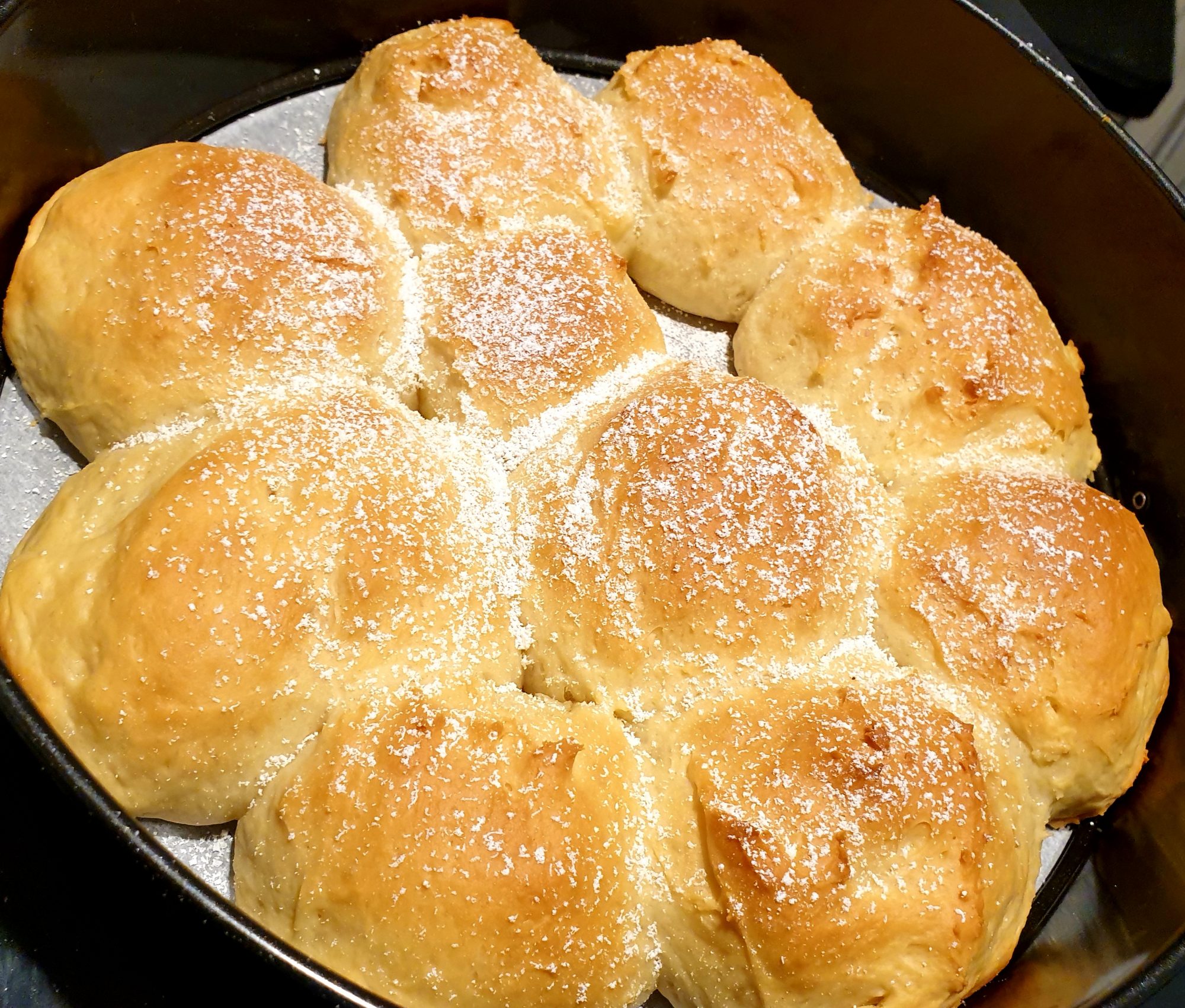 Faites des boules d'environ 40 grammes, placez les dans un moule tout autour puis au milieu sans les coller car elles vont regonfler.