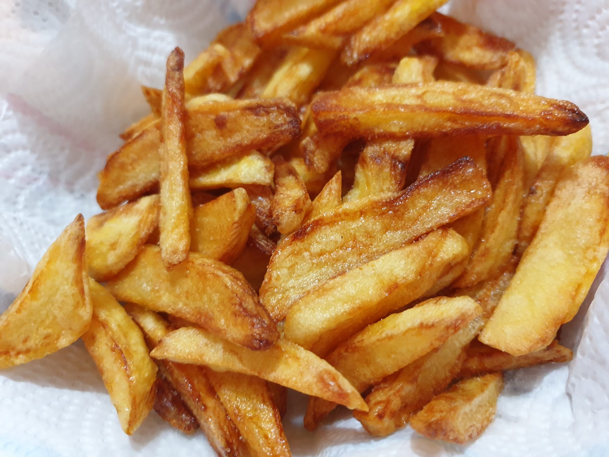 Déposez les frites dans le plat et recouvrez le fond avec de l'huile. Il doit y avoir une hauteur d'environ 2 ou 3 cm d'huile.