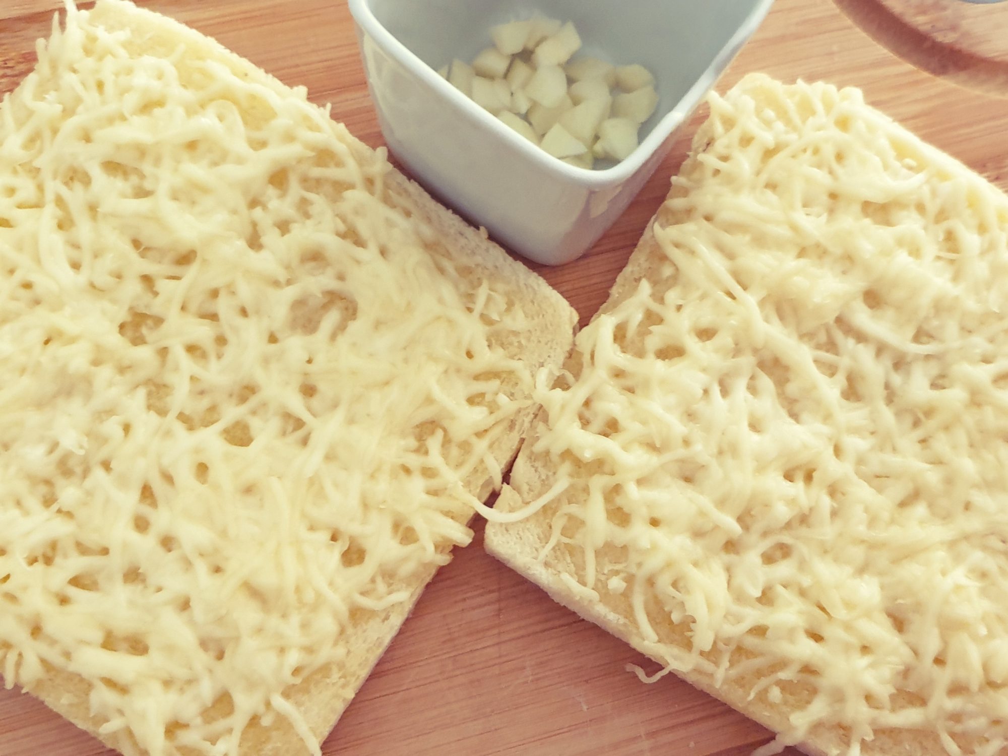 Avec un pinceau, étalez le mélange beurre et ail sur les pains de mie.