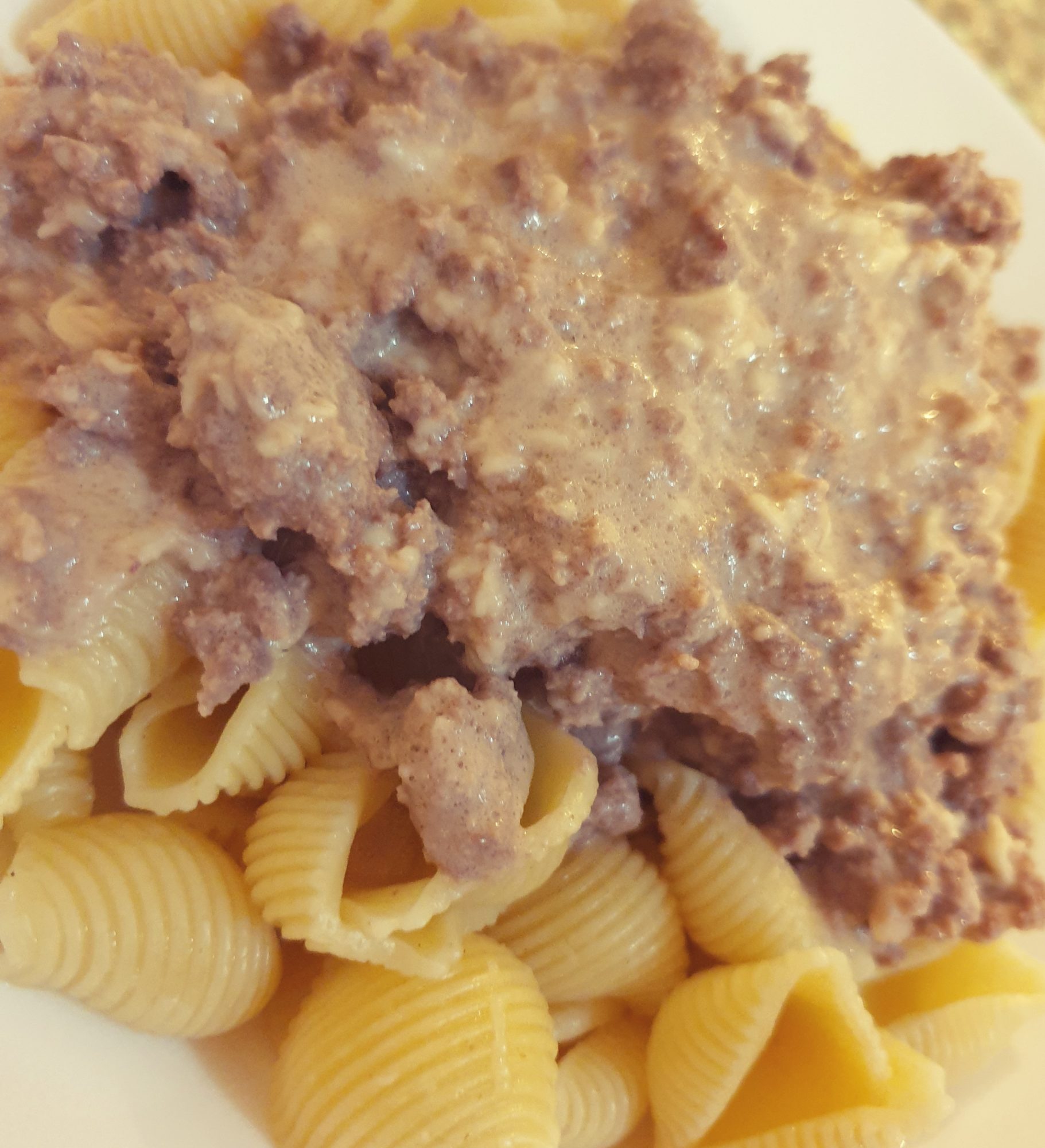 Versez les pâtes dans une assiettes et la viande hachée avec la sauce par dessus.