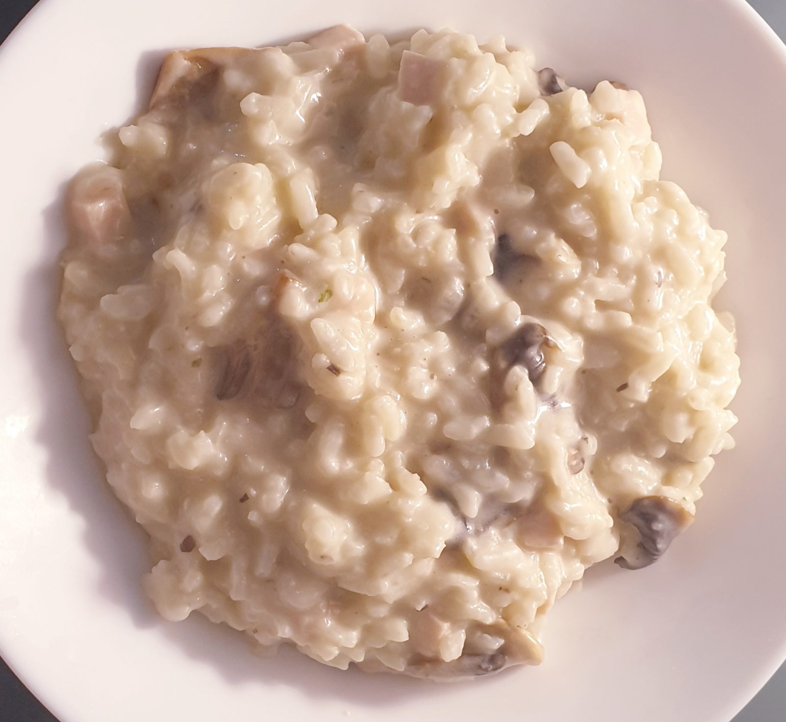 Risotto au poulet et champignons. Une recette facile à faire et avec un résultat parfaitement crémeux qui fera une recette gourmande.